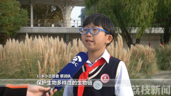 11岁的小志愿者蔡润执说:“我妈妈也是一名江豚志愿者,经常带我去上科普课。每次放流、保护江豚的活动我都会去。我想对小朋友说:保护动物人人有责,让我们一起去努力,保护生物多样性的生物链。”