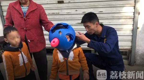 男童奶奶介绍,当时自己在干家务,双胞胎在一旁玩,出于好奇心,弟弟把家中的小马桶套在了哥哥头上,结果拿不下来了,奶奶试着用肥皂水润滑后再取下,但也未奏效,只能求助消防。