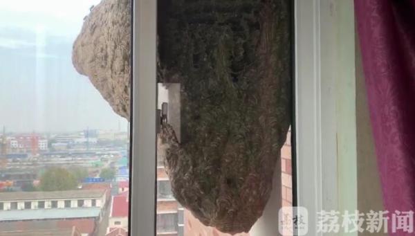 昨天(10月28日)上午,连云港市消防支队海昌路中队接到报警称,位于海州区新孔路上的一小区9楼居民家有一个巨型的马蜂窝,请求消防员帮忙摘除。