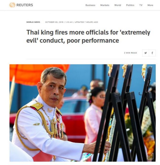 此后到了10月23日,泰国王室再发出两份公告,宣布解除6名王宫官员的职务,因为他们犯有严重的违纪行为。两份公告均称这些人都滥用其地位为自己和他人谋利,未能克尽其职、遵守纪律,给国家造成了严重的损害。