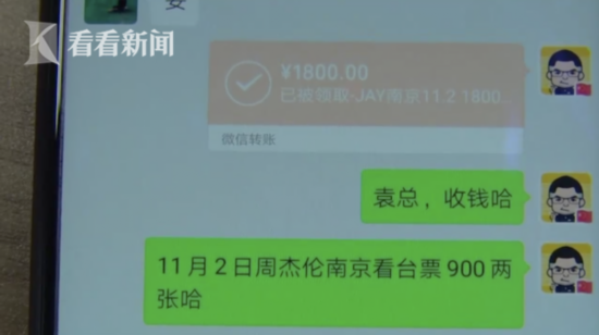 李女士说:“我被骗了56860元,这里面其实连我一共五个人的票,这五个人的票的钱都是我自己垫的。”李女士在安徽的朋友也加了袁某微信,共分九次买了50多万元周杰伦和林俊杰的演唱会门票。然而直到林俊杰演唱会结束,李女士朋友也没有收到票。