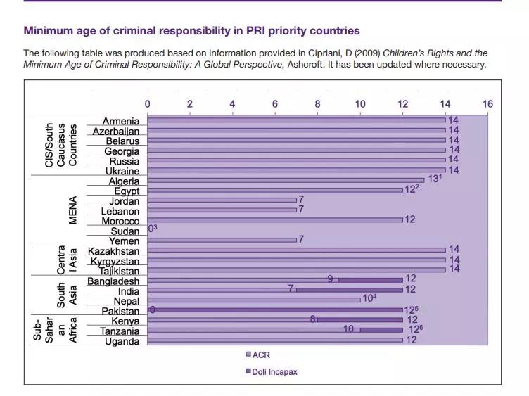就我这里掌握的数据,以国家数量计,目前规定14岁是起点的国家最多,但只要再稍作进一步分析,就可以得出12岁才是真正的比较法意义上的分水岭——从不规定刑事责任起点的7个国家和地区到11岁的,与13岁到16岁的基本持平。