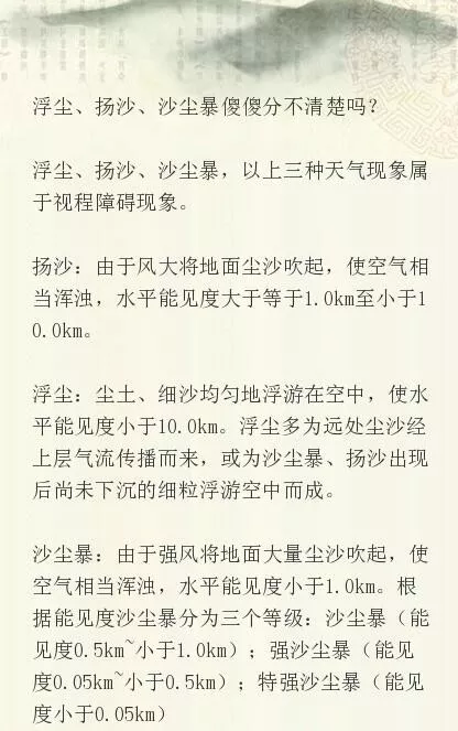 科普:浮尘、扬沙和沙尘暴
