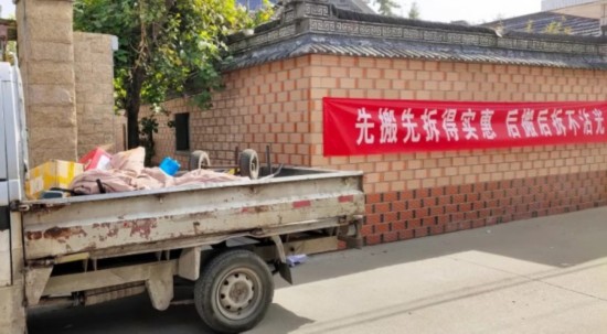 沿途的红色标语分外显眼,村民们忙着签字、选房、搬家,他们都将陆续离开这片生养他们的土地。