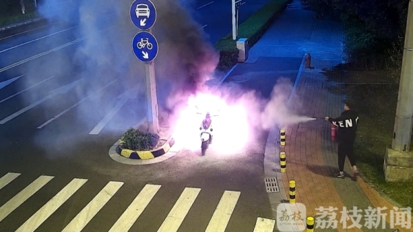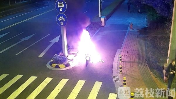 近日,苏州女大学生小陈和同学在晚上遭遇了危险一幕,她所骑的电瓶车突然冒烟,很快烧了起来。民警接到报警赶到现场时,电瓶车已倒在绿化带旁,车身腾起一米多高的火焰将车辆吞没,还冒着浓烈的黑烟。小陈告诉民警,当时她和同学骑着车,正在路口等红灯的时候就闻到旁边有一股特别臭的味道。