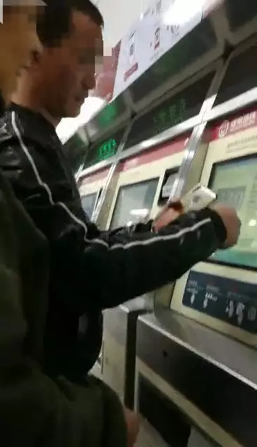继10月28日遇到老年乘客自助购票难的情况后,昨天,记者在购票时也遇到了一位五六十岁的女士,因不会使用自助购票机,不得不求助周围人,下图这位热心的小伙子协助购票,但没能成功。