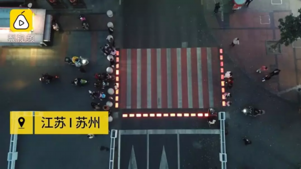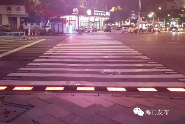 今年8月份,海门长江路和南海路口也出现了蓝泰公司的“发光”斑马线。海门市民接受采访时表示,低头玩手机时会被发光斑马线警醒,非常实用。