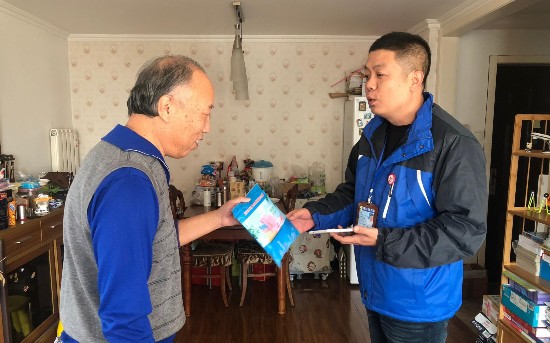 调查员在通州梨园怡然世家小区进行入户登记。北京市统计局供图