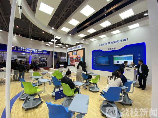 取代黑板的交互式触摸电子白板,可以前后调节的课椅,看不到一颗螺丝钉、任意组合的学生公寓床……展会现场除了汇集最新的科研仪器、教学设备以及后勤装备,并重点展示了一大批科技含量高的信息化和智慧教育产品。