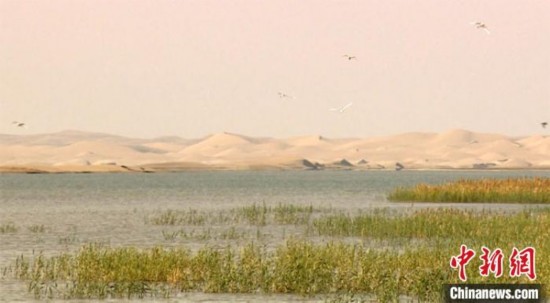 记者2日从甘肃敦煌西湖国家级自然保护区管理局获悉,今年10月中旬,该局科研人员在保护区腹地开展“秋季调查”工作时,发现一片水面出现在戈壁沙漠中,波光粼粼,宛若大海。水面东边有巨大的红柳包和几片茂盛的芦苇丛,期间还有白鹭和野鸭在水面栖息翱翔。