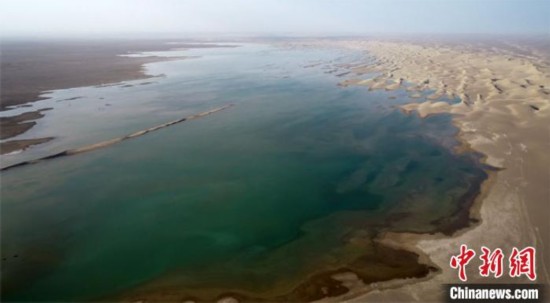这片“沙漠之海”即是干涸消失了近300年的疏勒河终端湖——“哈拉奇”。据敦煌西湖国家级自然保护区管理局科研科科长孙志成介绍,通过航拍器测量,目前水域面积已超过5平方公里,记录到的鸟类有11种,多年鲜见踪迹的野骆驼也频繁出现。沙漠里形成这么大一片水面,为野生动物提供了良好的生存环境。