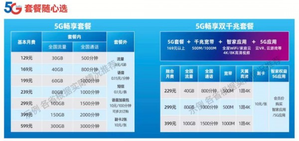 中国电信5G套餐资费