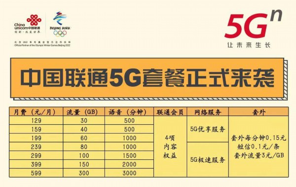 中国联通5G套餐资费