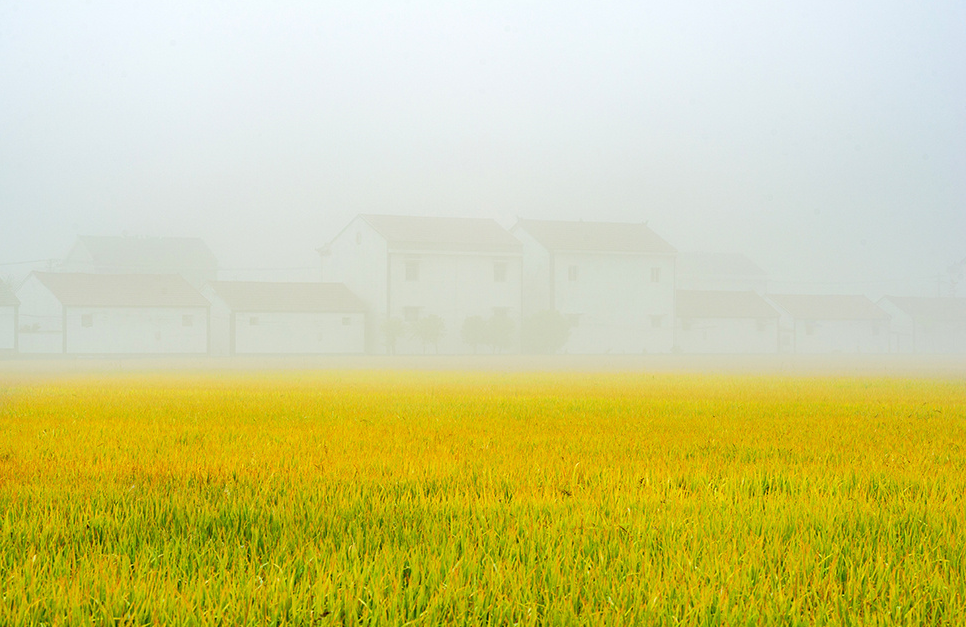 雾里稻田, 如梦如幻。刘继坤 摄
