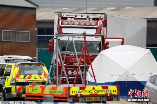 资料图:当地时间10月23日凌晨,英国警方在埃塞克斯一辆卡车集装箱内,发现了39具遗体。据信,死者均为越南籍。