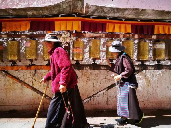 跟着当地人一起转经祈祷
