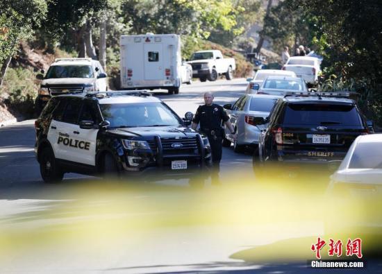 当地时间10月31日深夜,美国北加州奥林达一个万圣节派对上发生枪击事件,造成5人死亡,多人受伤。图为11月1日,一名警员在案发地附近与同事交谈。中新社记者 刘关关 摄
