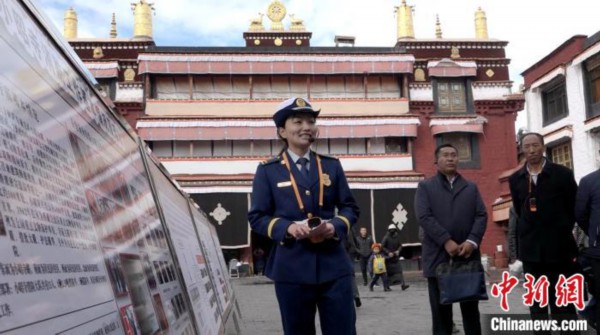图为消防安全相关负责人在小昭寺做现场讲解。 贡桑拉姆 摄