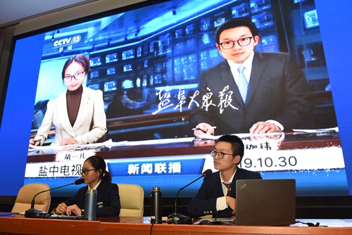 10月30日下午,盐城中学鹿鸣路校区学术报告厅内坐无缺席,一片欢声笑语,来自高三年级的两位作文高分学生梁珈玮和胡一凡作为主讲人,带来了一场精彩的讲座《素材与作文》,他们分享感悟,交流心得,旨在和同学们互帮互助,共同进步。