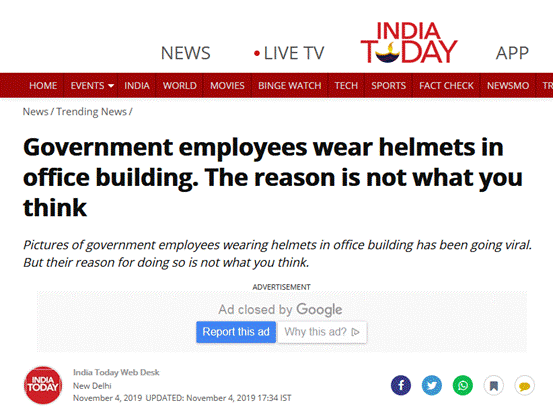 对此,《今日印度》评论说,为了安全起见,戴上头盔上班似乎成为了这些政府雇员们最后的方法,这些照片看上去真令人心酸。