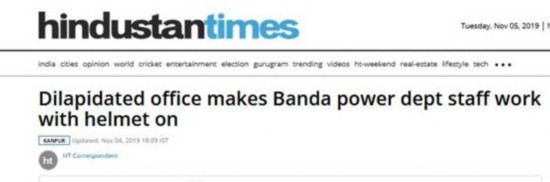 《今日印度》4日透露,印媒“亚洲国际新闻社”(ANI)当天在推特上率先分享了这组照片并写道,“班达市电力部门的员工在这栋破旧的办公楼里工作时戴着头盔,这么做是为了保护自己避免受到任何意外事故的伤害。”