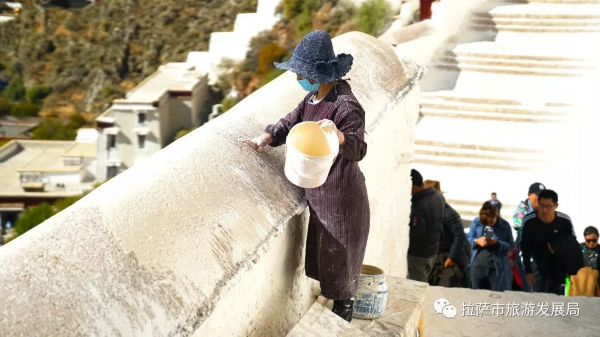 在“日光城”拉萨,每年雨季过后、冬季抵达之前,布达拉宫进入“换装时间”。