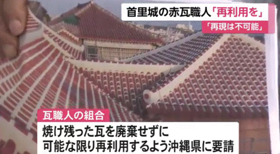 报道称,基于这种情况,冲绳县瓦匠工会已经放弃再造“赤瓦”,而是提出了“被烧毁瓦片再利用”的设想。“正是因为‘赤瓦’是前辈们经过无数辛苦亲手做成的珍贵材料,所以它们不应该被当作废墟,而是应该保留下来。”琉球赤瓦漆施工协会代表田端忠说,“不管剩下1片也好,2片也好,我们可以把它们当作复兴的象征,它们一定可以发挥很多作用。”