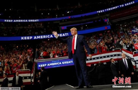 资料图:当地时间2019年6月18日晚,美国总统特朗普在佛州的竞选集会上正式宣布竞选连任。