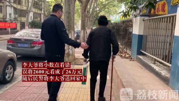 但李大爷拿出诊所单据时,民警哭笑不得。诊所的缴费通知单上显示,总共收费2600元,而李大爷看错小数点看成了26万。民警给李大爷讲了半天,李大爷才意识到是自己看错了。随后民警把李大爷送回了家。