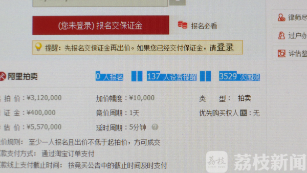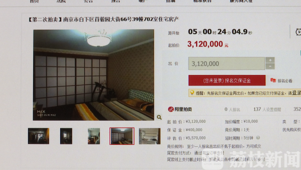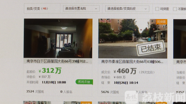 今天(11月5日)上午,记者在阿里司法拍卖平台看到,临近双十一,已经有多套价格诱人的法拍房引起网友围观。比如南京市秦淮区苜蓿园大街66号一套建筑面积为142.66㎡的住宅,市场评估价557万元,而此次起拍价仅为312万元,相当于5.6折。虽然截至目前还无人报名,但是有137人设置了提醒,引来3529次围观。