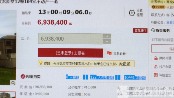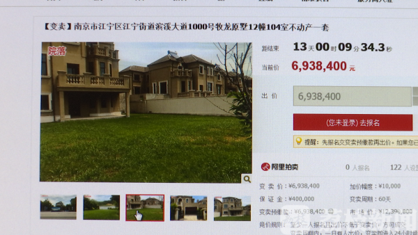 据了解,这套房子是第二次拍卖,按照有关规定,第一次拍卖在评估价的基础上打7折,第二次拍卖则是在第一次的价格上再打8折。另外,一套南京江宁区的别墅,市场价1239万元,法院起拍价693万8400元,也同样是5.6折。