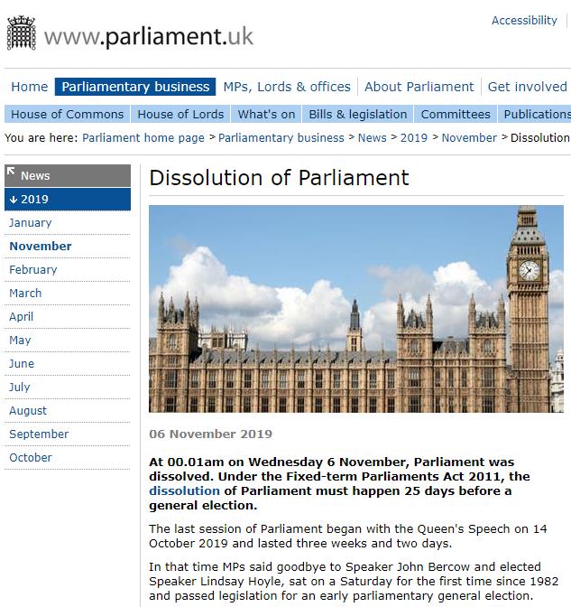 当地时间6日凌晨,英国议会在其官网上宣布正式解散。按照英国法律,议会在大选开始前25个工作日自动解散。
