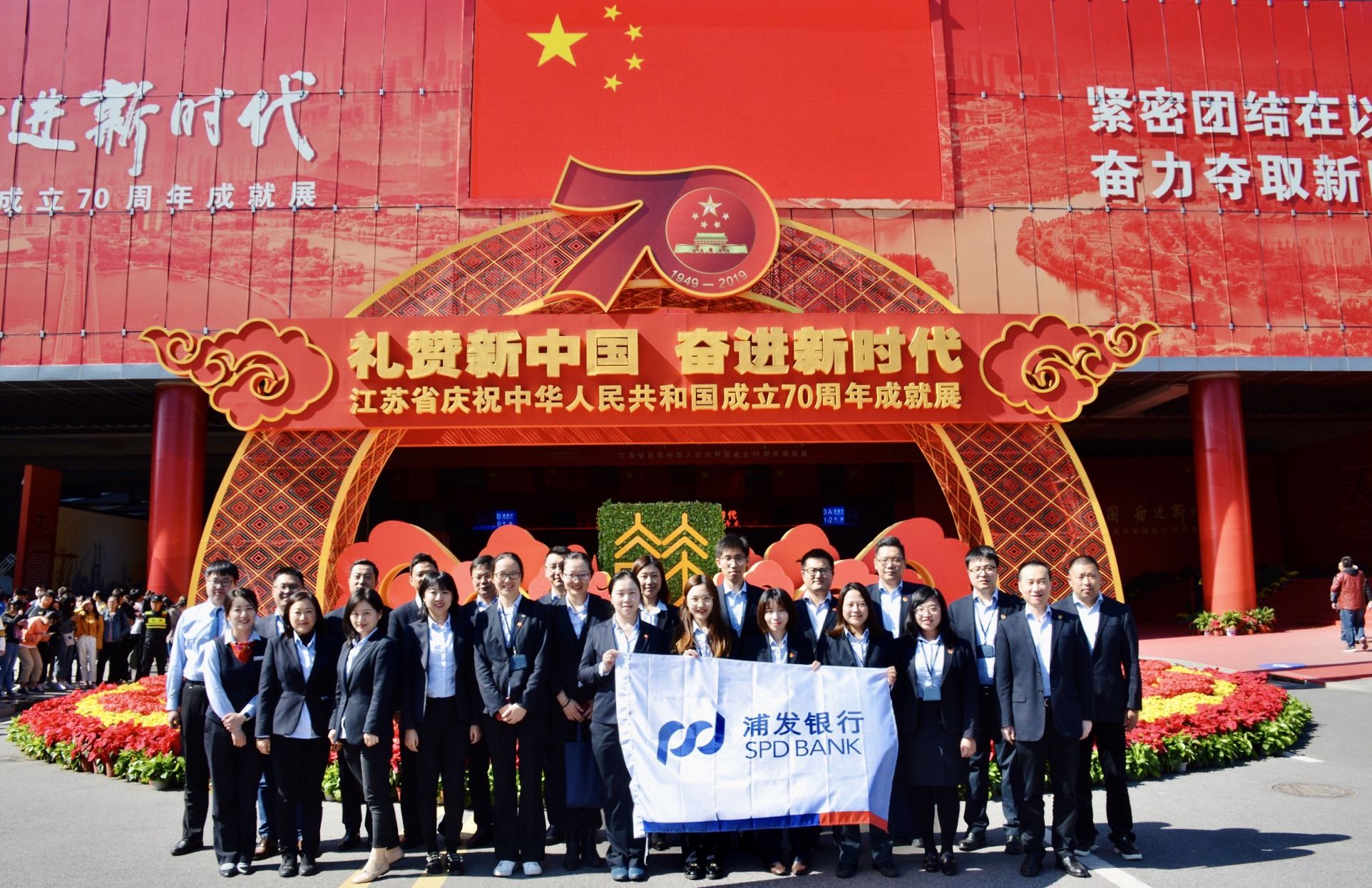 近期,浦发银行南京分行组织部分党员干部、入党积极分子、青年团员代表来到南京国际博览中心,参观了江苏省庆祝中华人民共和国成立70周年成就展。此次展览以“礼赞新中国,奋进新时代”为主题,通过综合展、地方展和室外展3个展区,综合运用场馆展览、网上展览、挂图展示等形式,全面展示了中华人民共和国成立70周年来党领导江苏人民进行建设、改革和发展的伟大历程、巨大成就和宝贵经验,突出展示了党的十八大以来江苏省贯彻落实习近平总书记关于江苏工作重要讲话指示精神,努力推动高质量发展走在前列的巨大成就。