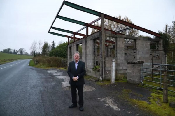 10月31日,今年63岁的爱尔兰新芬党议员帕特·特雷纳站在爱尔兰和英国北爱尔兰交界处一个被废弃的海关检查站前。新华社发