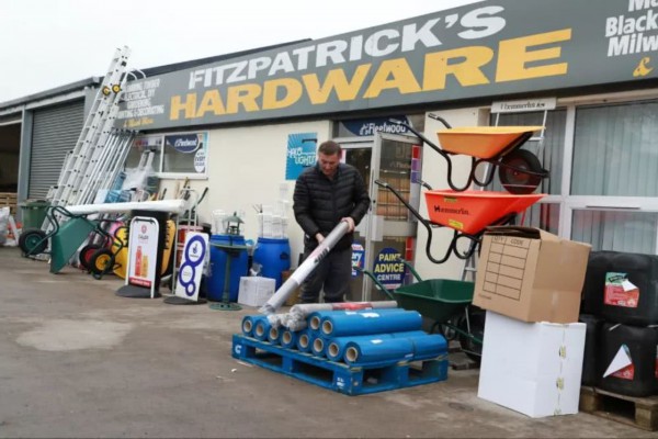 10月31日,在爱尔兰北部边境小镇克朗斯,埃蒙·菲茨帕特里克站在他经营的五金商店前。