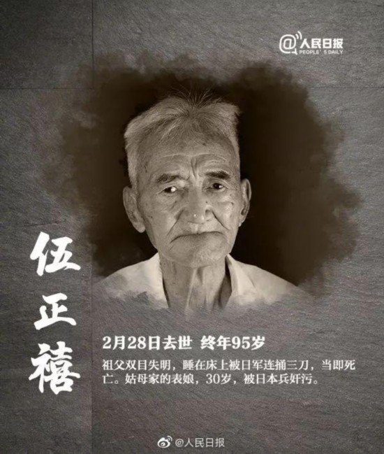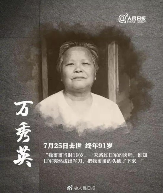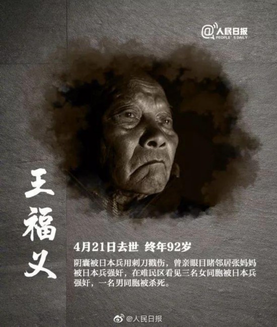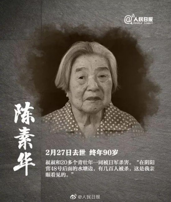 “南京大屠杀暴行发生时,我20岁,日本人到处烧房子、杀人,我们只能藏在地洞里躲避追捕,我为了防止被日本人施暴,就用土灰糊在脸上。后来,为了躲避日本人,我们一家跟着同乡跑反,途中日本飞机仍在炮轰。”
