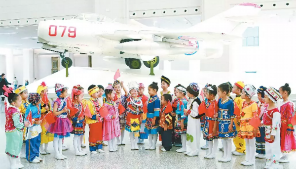 这张空军蓝天幼儿园小朋友和079号功勋战机的“同框照”(安香秀 摄),展现了新时代少年儿童热爱空军、崇尚英雄的真挚情感。