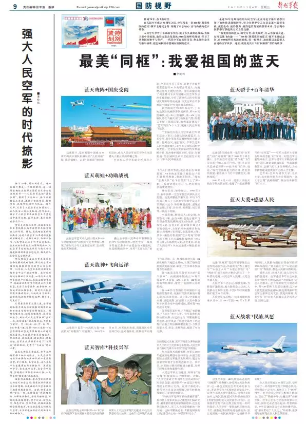 ■董栓柱奋飞70年,同框新时代。每一张图片都是一个经典瞬间,每一次同框都标注着捍卫国家空天安全能力的跃升——人民空军这组“最美合影”,展现了不忘初心、奋飞向前的蓝天英姿,展现了实战空军、转型空军、战略空军的时代风采。图片无声,记录了人民空军让祖国放心、让人民安心的壮美航迹;誓言永恒,昭示了人民空军在世界空天力量竞逐中赢得先机、赢得主动、赢得优势的坚定信心。空军是战略性军种,在国家安全和军事战略全局中具有举足轻重的地位和作用。强大,是战略空军的内在要求,也是人民空军70年建设发展的不懈追求。为强大而生,向强大奋飞,人民空军走过了70年壮美航程。在庆祝新中国成立70周年阅兵中,人民空军多型战机成体系飞越天安门接受检阅的雄姿告慰先烈,强大的人民空军已如您所愿。空天领域日益成为事关国家安全和发展的战略高地,强大的空军为国家发展提供坚实的空天安全屏障。70年来,人民空军在捍卫国家主权安全中立下赫赫功勋。在初创时期就与强敌对手较量,一举打出大国空军的尊严和地位;在国土防空作战中,创造出世界防空作战史上许多新纪录,交出了忠于使命、献身使命、不辱使命的合格答卷。新时代人民空军聚焦备战打仗,立起战斗力标准,在实战化训练中擦亮品牌,钢多了,气更足了。大国重器要有大国之威,空军的战略能力要与不断拓展的国家利益和不断变化的安全形势相适应。明晰战略定位、拓展战略视野、提升战略能力,新时代人民空军按照“空天一体、攻防兼备”的战略要求,不断奋飞前行。歼-20、运-20、歼-16、歼-10C和轰-6K、空警-500以及红-9地空导弹等新型武器装备投入新时代练兵备战,不断提升空军战略能力。警巡东海、战巡南海、前出西太、绕岛巡航,空军在改革强军中有了“飞得远”的新佩剑,更有了“飞出去”的主心骨。威武之师还是要威武,和平之师要有捍卫和平的能力。人民空军作为维护世界与地区和平的一支重要力量,开门练兵、互学互鉴,为人类和平与发展事业而不懈奋斗。在开放中学习,在交流中进步,在合作中提高,坚持履行国际责任和义务,人民空军的“朋友圈”越来越大。国家利益拓展,要求空军提供强大的空天安全支撑;国家经济科技实力不断增强,为建设现代化空军提供了雄厚的物质保障。当前,空军正按照“空天一体、攻防兼备”的战略目标,加强练兵备战,推进战略转型,不断提高战略预警、空中打击、防空反导、信息对抗、空降作战、战略投送和综合保障能力,努力建设强大的现代化空军,为实现党在新时代的强军目标砥砺奋飞。