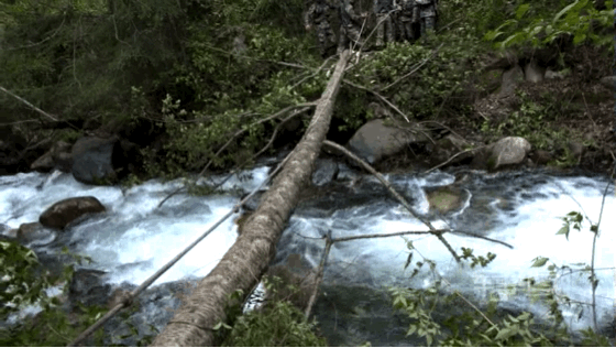 树干做桥渡急流