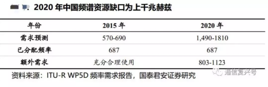 传统专用频谱分配方式使得频谱资源分配已满但利用率低下,导致移动通信系统面临频谱需求高但频谱资源严重短缺的矛盾。ITU-RWP5D频率需求报告指出,2020年全球和中国的频谱资源缺口为上千兆赫兹。