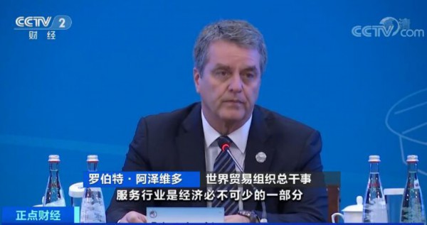 世界贸易组织总干事 罗伯特·阿泽维多:从物流、金融,再到信息技术产业,服务行业已经成为经济中必不可少的一部分,服务行业贡献了超过三分之二的经济产出。在发展中国家,服务业贡献了超过三分之二以上的就业岗位,这一数字的比例在发达国家达到五分之四。