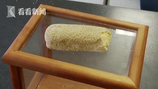 这是什么?肥皂?海绵?丝瓜筋?你可能想不到这块颜色有些发灰的物体,是在常温下保存了43年的奶油夹心蛋糕。