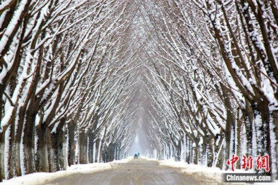 冬季的江苏邳州市铁富镇银杏“时光隧道”。图片来源:邳州市委宣传部供图。