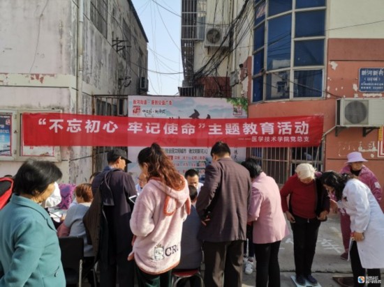 江苏医药职业学院医学技术学院党总支书记黄芹介绍,这次活动是我们党总支“不忘初心 牢记使命”主题教育活动党员志愿服务的一个重要环节。我们为老人们提供免费身体状况的检查、饮食安全、合理用药的宣传等,并提醒他们发现问题及时到正规医院检查就医。