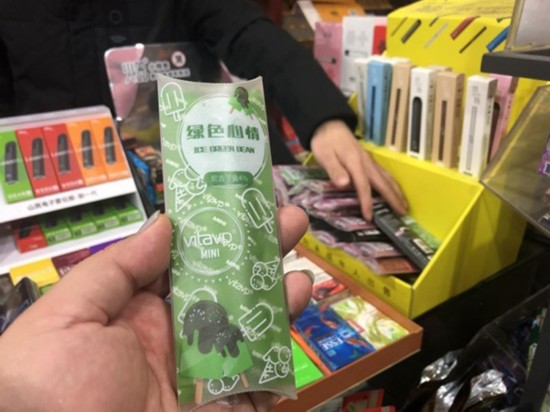 不仅如此,北青报记者仔细观察发现,这类一次性电子烟的包装上大多没有一个“烟”字。“绿色心情”“蜜桃乌龙”“找抽”等词大多代替产品名称印在外包装的正面。而即使产品介绍中,也丝毫不提及其是“电子烟”的事实,大多以“本品”或“产品”或用口味名称、品牌名称一代了之。这种一次性的产品大多有或精致或绚丽的外包装,如果不是记者专门来找电子烟,很可能认为老板递过来的是一盒零食或者一盒文具。