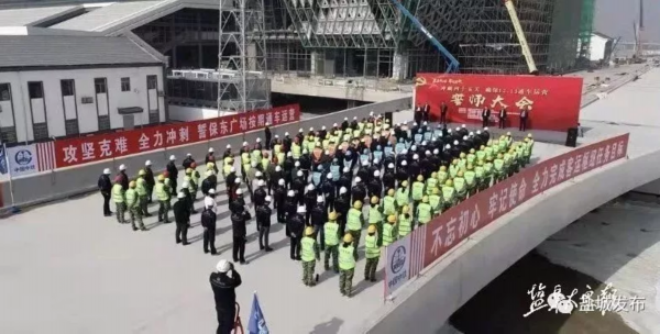 11月1日,盐城综合客运枢纽举行“奋战45天,确保12.15通车运营”誓师大会,动员各参建单位再鼓干劲、再加压力、再聚合力,全力以赴推进枢纽项目建设。