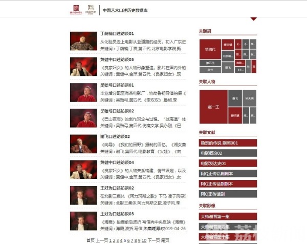 这一数据库是南京艺术学院与中国传媒大学进行跨区域、跨学科合作的成果,在留存史料的基础上将口述历史和艺术研究相结合,形成更有效的跨学科学术实践。2016年以来,南艺口述历史研究中心投入口述数据库的建设工作,在进行大量数据录入、编目工作的同时,进行了两期媒资服务系统的扩容与优化,初步建成以电影为主,同时融合音乐、文学、戏剧等多个艺术门类的数据平台,包含口述资料、文献资料与视频资料三大类别,在保证丰富信息量的同时实现易于检索的功能。