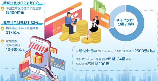 伴随“双11”收官,消费金融的参与机构陆续晒出了自己的“战报”:截至11月11日23时50分,中国工商银行信用卡交易额超200亿元;截至11月11日18时33分,招商银行信用卡交易额达217亿元;京东白条交易额实现10秒破亿元……