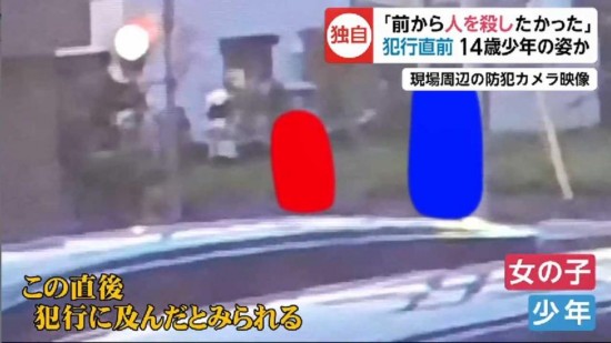 海外网11月14日电当地时间12日下午,日本青森县八户市一名14岁初中生,用美工刀割伤一名小学女生颈部并在其喉咙附近留下约10厘米长伤痕后逃走。当天晚上,警方在分析案发现场附近监控录像后将其逮捕,被捕后他供述称,“很久之前就想杀人,不管是谁都行”。