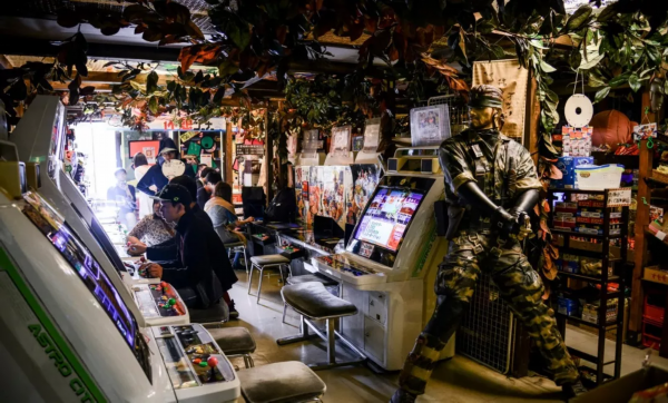 店内 5 楼是个充满复古味道的小型街机厅,里面的游戏都是 20 世纪八九十年代的街机游戏。